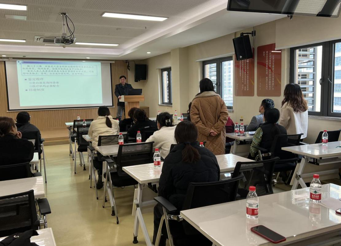 为进一步规范精神卫生服务,维护精神障碍患者的合法权益,加强医务工作者对《精神卫生法》的认识,2024年3月5日,我中心召开了《中华人民共和国精神卫生法》专题培训会,特邀请成都市第四人民医院秦小荣老师为我们详细解读了精神卫生相关法律法规知识,会议从《精神卫生法》的立法思路、发展精神卫生事业、规范精神卫生服务、维护精神障碍患者的合法权益几方面来解读《精神卫生法》,对精神病人的“送”(诊)、“诊”(断)、“治”(疗)、“出”(院)等重要环节作出了全面的讲解。